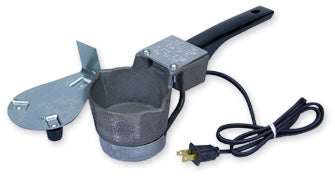 Features: 3" x 1 3/4", 4 lb. lead capacity cast iron pot, heat resistant plastic handle, metal stand, and three foot cord.120 Volts AC,