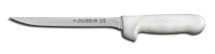 The Sani-Safe product line offers the foremost standard for professional cutlery. A textured, slip-resistant, easy-to-clean polypropylene handle withstands both high and low temperatures. An impervious blade-to-handle seal provides the utmost in sanitary performance. Blades are manufactured from proprietary DEXSTEEL stain-free, high-carbon steel, are individually ground and honed, and excel in commercial use. Made in USA. Items marked with the NSF logo are NSF Certified.
