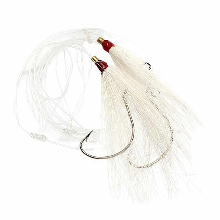 Rigged with 2 Mustad wide gap hook, It has a white bucktall teaser on each hook.