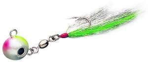 This deep-water jig can be cast, jigged or drifted to get down to game fish – fast! Featuring reinforced stainless steel attachment loops that will stand up to the abuse of deep water denizens. These epoxy-coated jigs come with premium Mustad Stainless Steel Siwash hooks attached with extra strong, chrome swivels and dressed with genuine bucktail and holographic sparkle flash material for lifelike presentations. Weights from 1 oz. to 8 oz. can fit the needs of inshore and offshore anglers. Each ball jig is fitted with oversized, holographic 3-D eyes to give predators a better target for each strike.