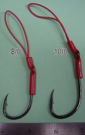 Features a 200-lb. braided line loop and our 4X Strong Octopus, NS Black hook. Assist hooks have a short length of flexible braided fabric that is stronger than monofilament of equivalent diameters. The braided fabric is attached to a solid ring by means of a simple looped connection. Assist hooks are commonly used for vertical jigging to increase hookup ratios.