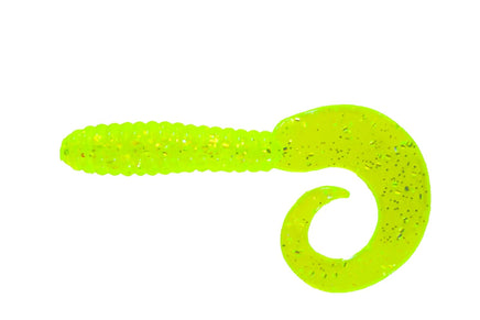 Blue Water Candy Swirl Tail Grubs- 4 in- Amt 20- Chartreuse Flake