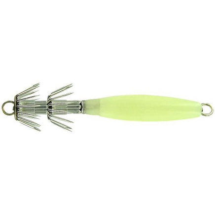 Squid jig featuring a double row of needle sharp hooks. Approximately 3 inches in length. JEROS TACKLE plastic squid jig