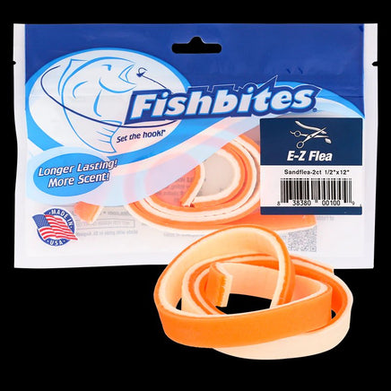 Just cut it, hook it and cast it. All you need is sharp scissors. How EZ is that? E-Z Flea can be used on a bare hook or as a trailer on a jig or skirt. Each bait strip is 1/2" wide and about 12" long. Use them to catch a wide variety of saltwater species. The Longer Lasting formula features a cloth binder in the middle of the bait that keeps it on the hook despite the efforts of notoriously toothy bait stealers. Fishbites E-Z Flea, Mole Crab, Sand Crab alternative is the go-to bait for ALL species that feast on these critters.