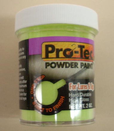 Imagine a paint with virtually no odor, no drying time, no solvents and no mixing. Now imagine a brilliant, super-durable high gloss finish in seconds! These qualities, coupled with a spectrum of colors to choose from, have made Pro-Tec Powder Paint the obvious choice for thousands of consumers worldwide.A paint that requires no primer coat and no gloss coat translates into more money in your pocket. In fact, 2 ounces of Pro-Tec Powder Paint will cover over 450 of your 3/8 oz. jigs. Combine that with a painting process that takes less than 20 minutes from start to finish and you've got an unbeatable product.