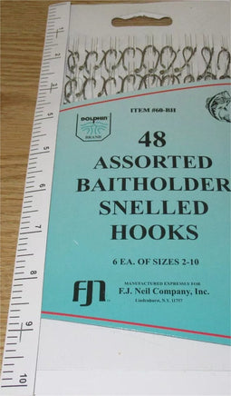 There is 48 assortment of snelled Aberdeen hooks in sizes 2,4,6,8,10