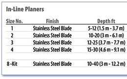 The AFW Planer is an innovative and precisely balanced piece of fishing of gear. A lead weight acts as a keel and balance to keep the planer running straight at controlled depths. When the planer is in the water in diving position, water pressure against the blade forces the planer. When a fish strikes, the balance is changed. The planer then trips and produces a slight upward drag, which allows you to fight your fish rather than a heavy lead sinker.