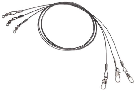 Heavy-duty Surflon Leaders are made with Black, nylon coated Surflon 1x7 stainless steel wire and high quality Sleeves, Swivels, and Lock Snaps. Leaders are double-crimped for extra strength and are great for many types of toothy game fish.