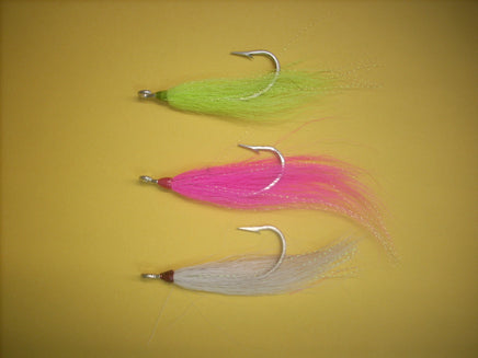 Dressed Single Teaser Hook. 3 pre pack Bucktail Tied On A Closed Eye Mustad Hook With A Touch Of Flash