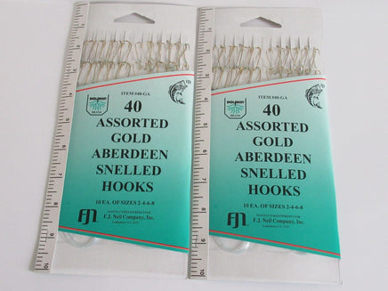 There is 40 assortment of snelled Aberdeen hooks in sizes 2,4,6,8